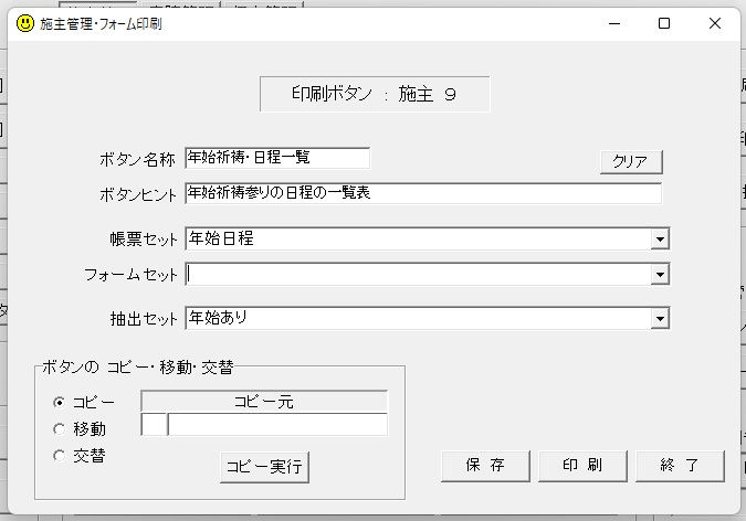 ○「印刷ボタン」の「コピー」「移動」「交替」